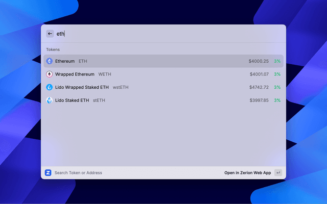Monitor any account directly in the Raycast! Easy access your favorites, view all NFTs in a collection, and stay updated with real-time market insights with quick links to the Zerion web app!