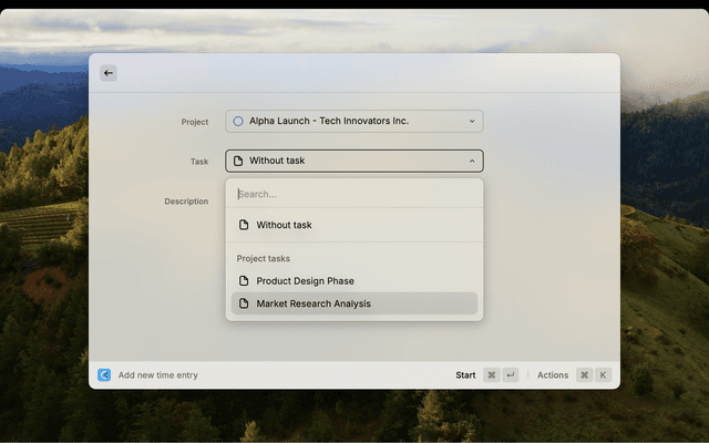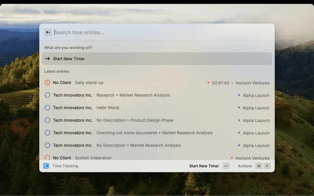 • Start new time entries