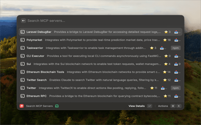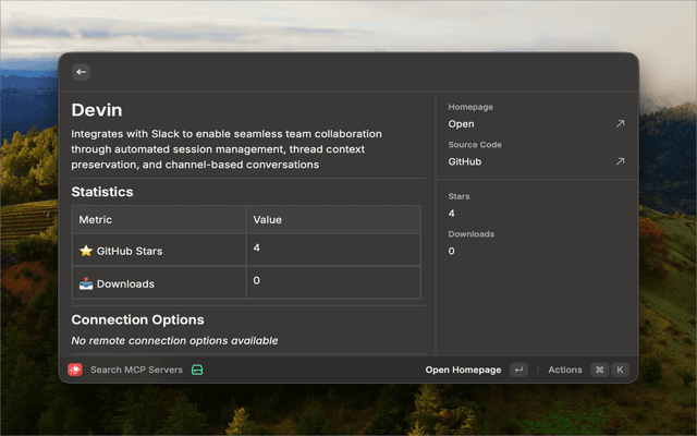 • View Server Details - See stats, connection options, transport types, and AI-generated descriptions