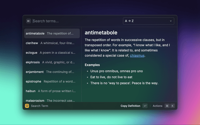 A Raycast extension for building and managing your own personal glossary.