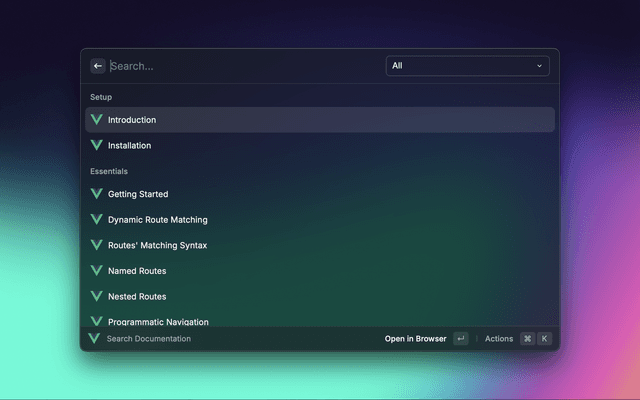 A Raycast extension to quickly search and open Vue Router documentation.