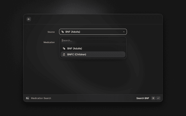 - Dual Formulary Support: Seamlessly toggle between BNF (Adults) and BNFC (Children) using a simple dropdown menu.