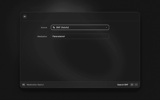 A fast, efficient Raycast extension designed for nurses, students, and healthcare professionals. It allows you to search the British National Formulary (BNF) and BNFC (Children's Formulary) directly from your keyboard.