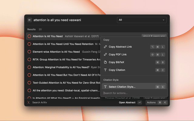 - Open Raycast and search for "Search ArXiv"