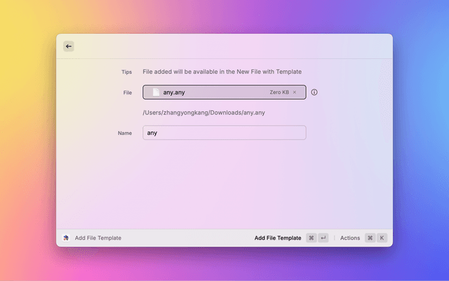 When use the Add File Template command, the extension will automatically detect the selected file in the front-most Finder window. How to get the file path automatically?