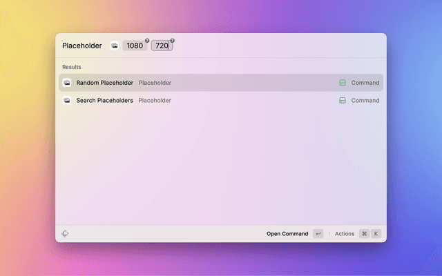 If you find an image you like in the Search Placeholder Image command, you can use the Set Desktop Wallpaper action to set it as your desktop wallpaper.