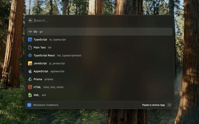 I run the command and select go as the language for the codeblock:
