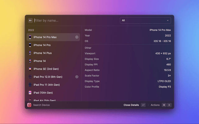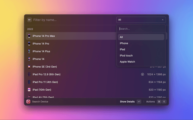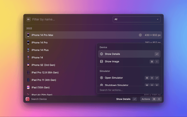 Quickly look up Apple Devices and control Simulators