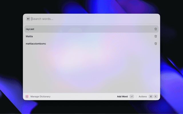 | Manage Dictionary | View, add, and delete custom dictionary words |