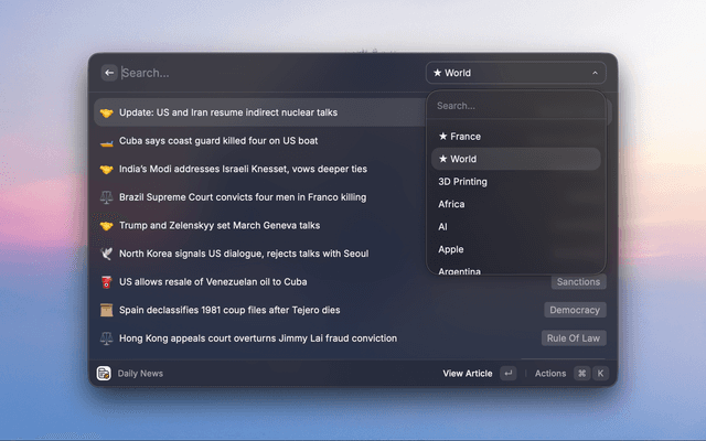 Read and explore Kagi News articles and sources seamlessly in Raycast.
