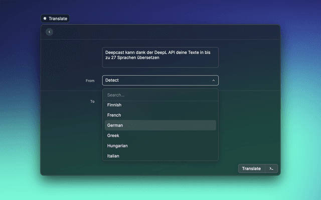 Translate words, or entire sentences, into 30 different languages using DeepL.