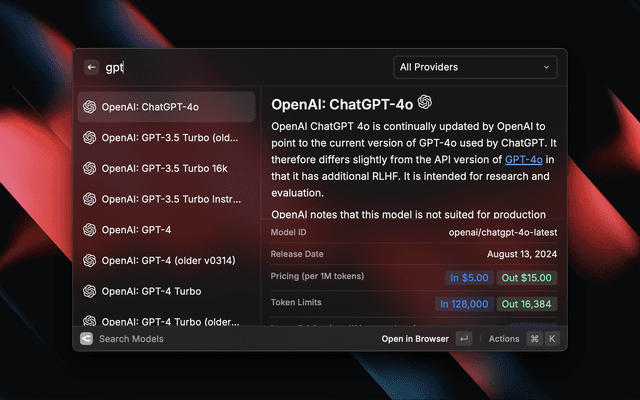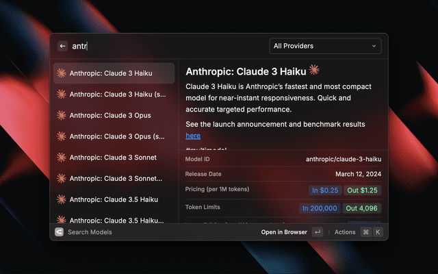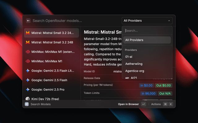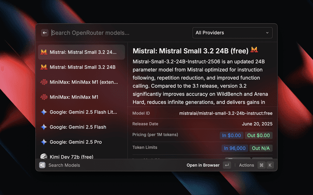 • Quickly search for models on OpenRouter