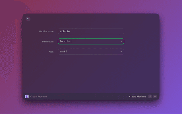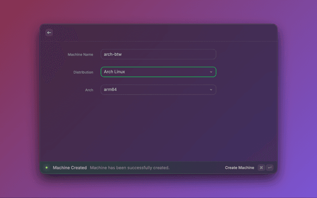 • Machine Management - Start, stop, and monitor OrbStack Linux machines instantly