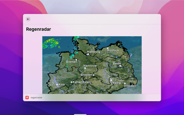 Shows the current rain radar by Deutscher Wetter Dienst