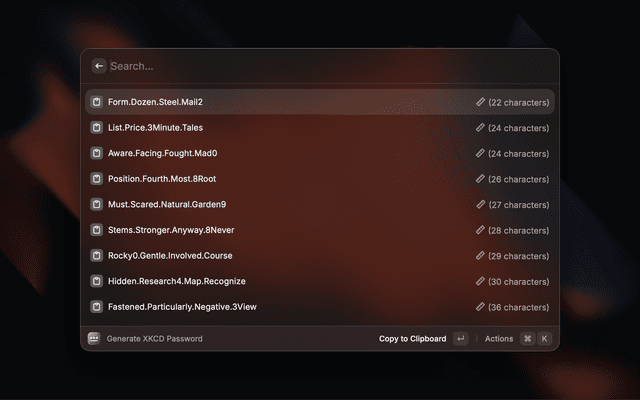 Generate strong passwords according to the "xkcd" style: https://xkcd.com/936/