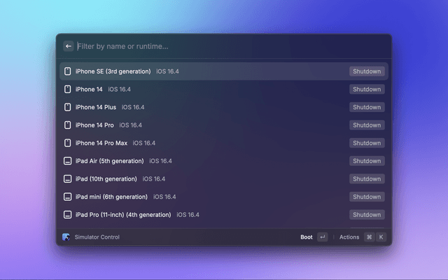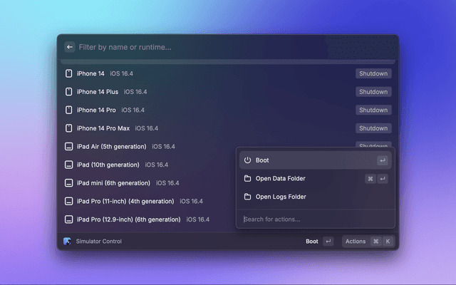 Search and open your recent Xcode Projects, manage your Simulators & Apps, view the latest Releases, create Swift Packages & Playgrounds and quickly clear Xcode cache files.