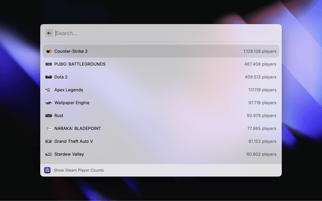 This extension lets you see the player counts of popular steam games. If you want to add more to the list, feel free to update them.