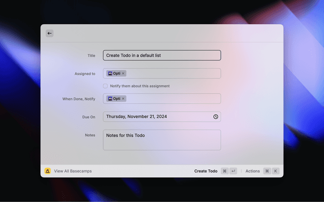 Manage your projects and todos from Basecamp directly in Raycast. This extension helps you stay on top of your tasks, collaborate with your team, and boost your productivity without leaving your keyboard.