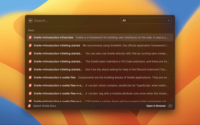 Search the svelte docs directly in RayCast
