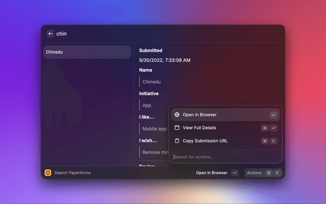 References: Raycast docs · Paperform API