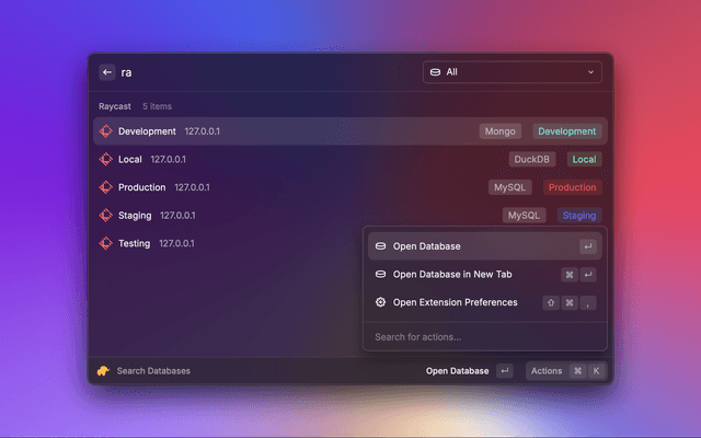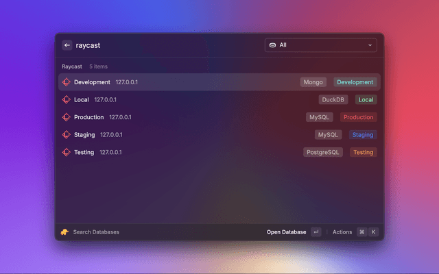 Quickly connect to all your connections directly from Raycast.