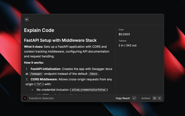 One-keystroke code transformations from any app.