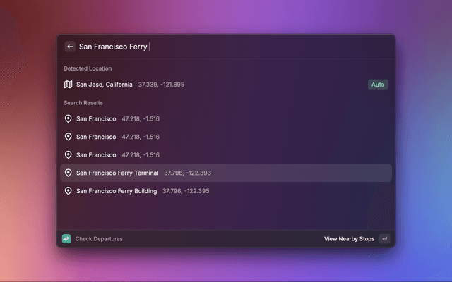 - Nearby Stops: Automatically detect your location or search for stops by name.