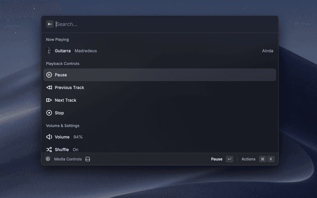 • Media Controls - Full control panel with volume, shuffle, repeat