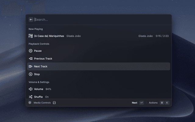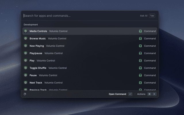 Control your Volumio music player directly from Raycast.