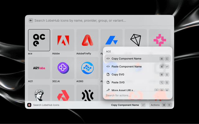 The Raycast extension to search AI / LLM brand SVG logos and icons from LobeHub Icons.