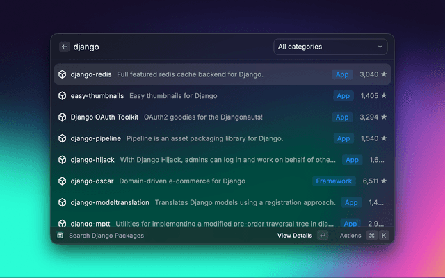 • 🔍 Fast package search – Debounced queries against the Django Packages API return relevant packages quickly.