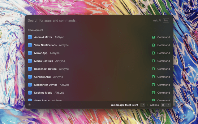 Control your AirSync macOS app directly from Raycast with this powerful extension.