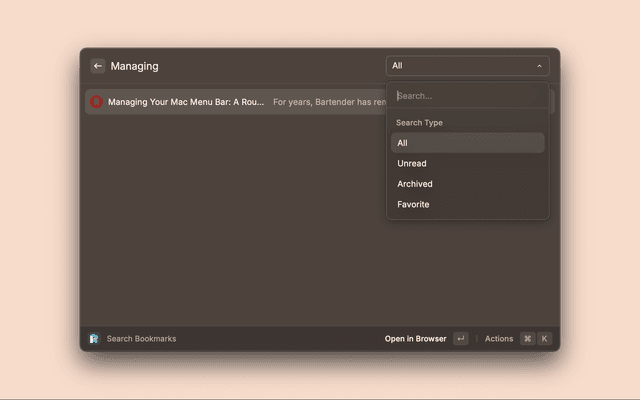 This extension allows you to manage your Readeck bookmarks directly from Raycast. You can add new bookmarks and search through your existing ones effortlessly.