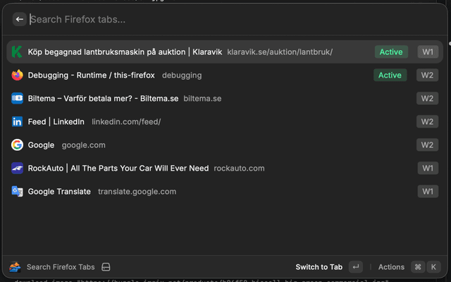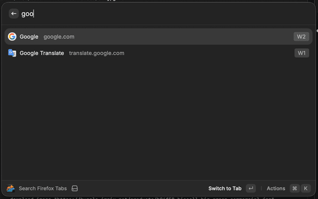 That's it -- your tabs will appear in the Search Firefox Tabs command.