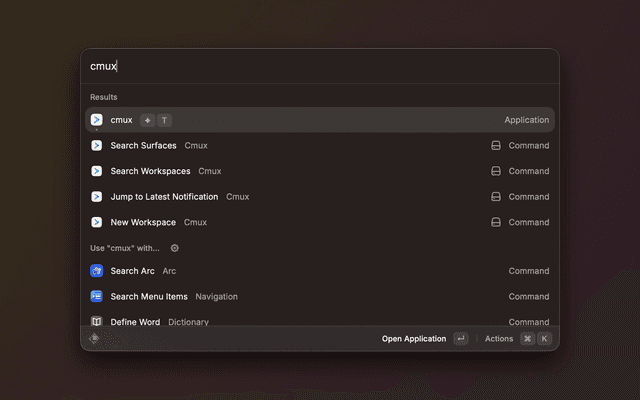 This extension lets you control cmux without leaving your keyboard. Commands are available via Raycast to navigate and manage your workspaces and surfaces directly from anywhere on your Mac.