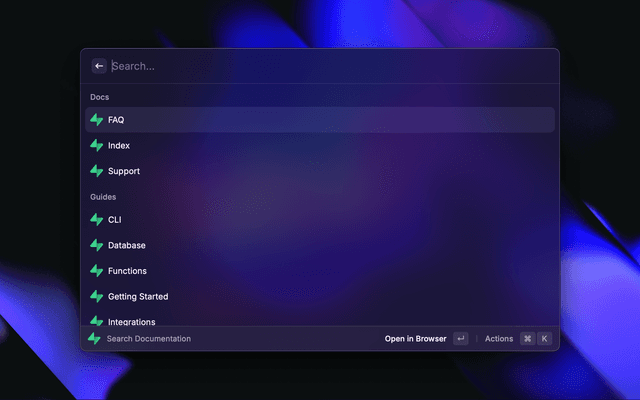 Quickly search Supabase documentation and open it in the browser