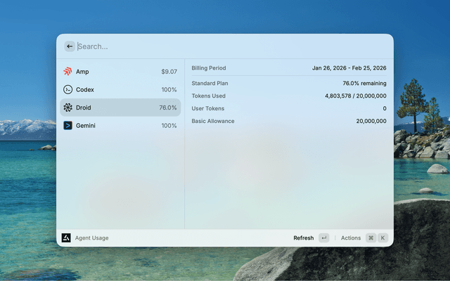 2. Open Agent Usage in Raycast — Codex usage will be auto-detected from ~/.codex/auth.json