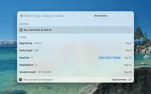 - Auto-Parse: Copy a FIX message and open the command. It detects and parses automatically.