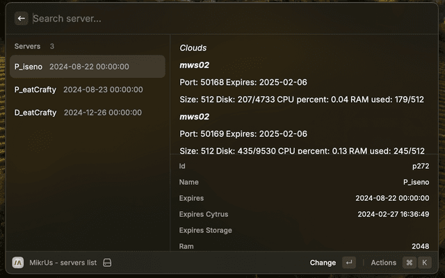 All preferences properties list that can be customize through Raycast Settings > Extensions > Mikr.Us