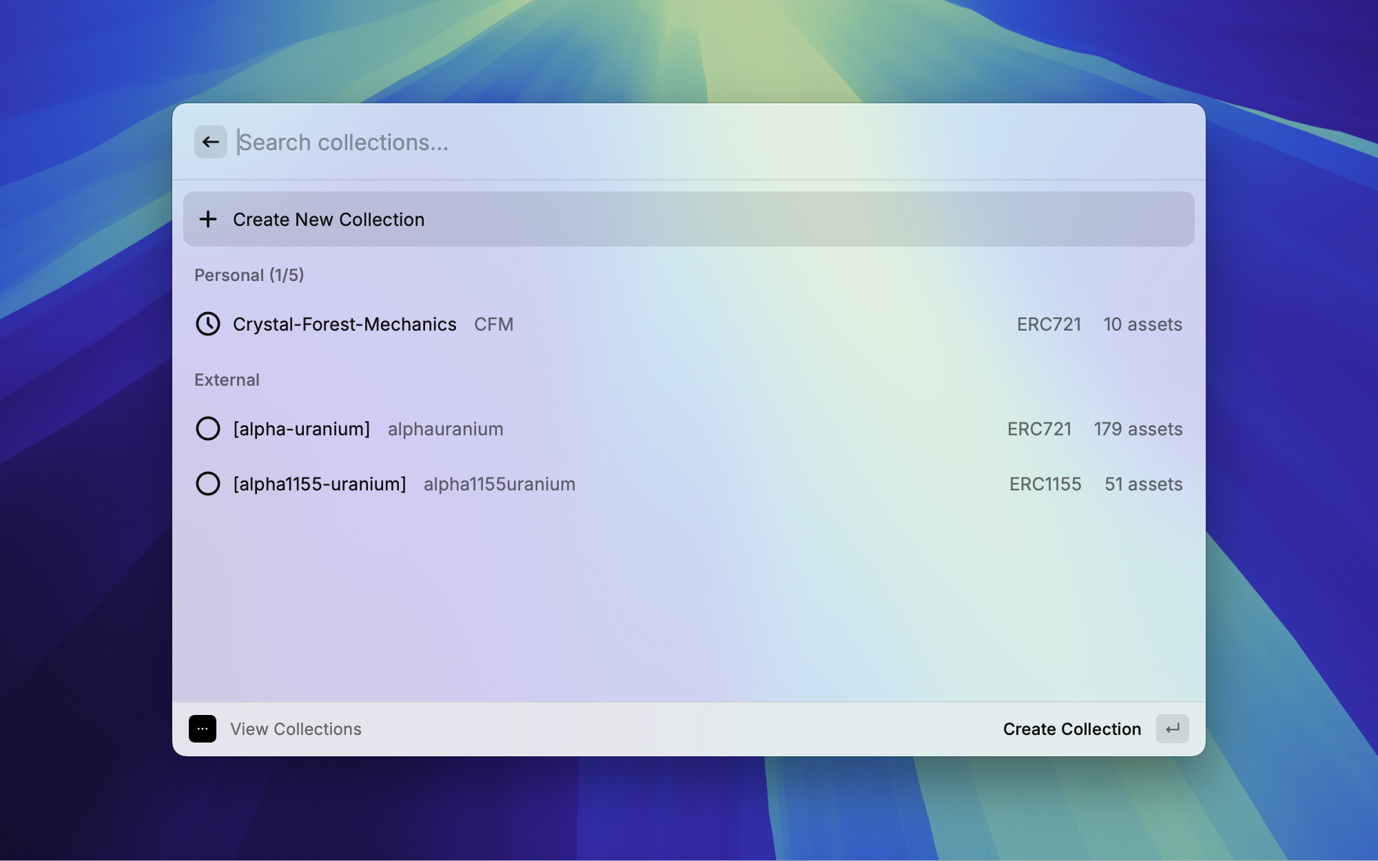 Manage your Uranium NFT collections and assets directly from Raycast. This extension allows you to mint, list, and manage your digital assets and collections on the permaweb without leaving your workspace.