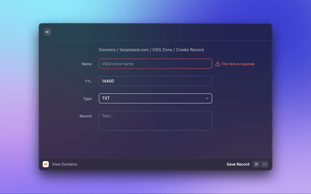 This is a Raycast extension for cPanel User level accounts (Admin and Reseller not supported). With this extension you can View Domains and their DNS Zones, Email Accounts and their Disk Usage.