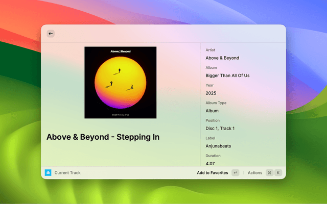Menu Bar PlayerDisplay the current track in the menu bar with playback, grouping and volume controls ⓘ